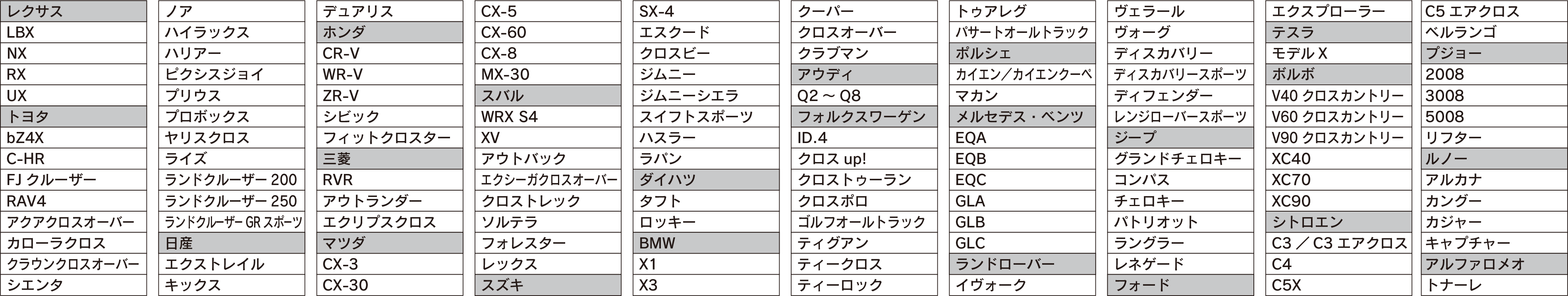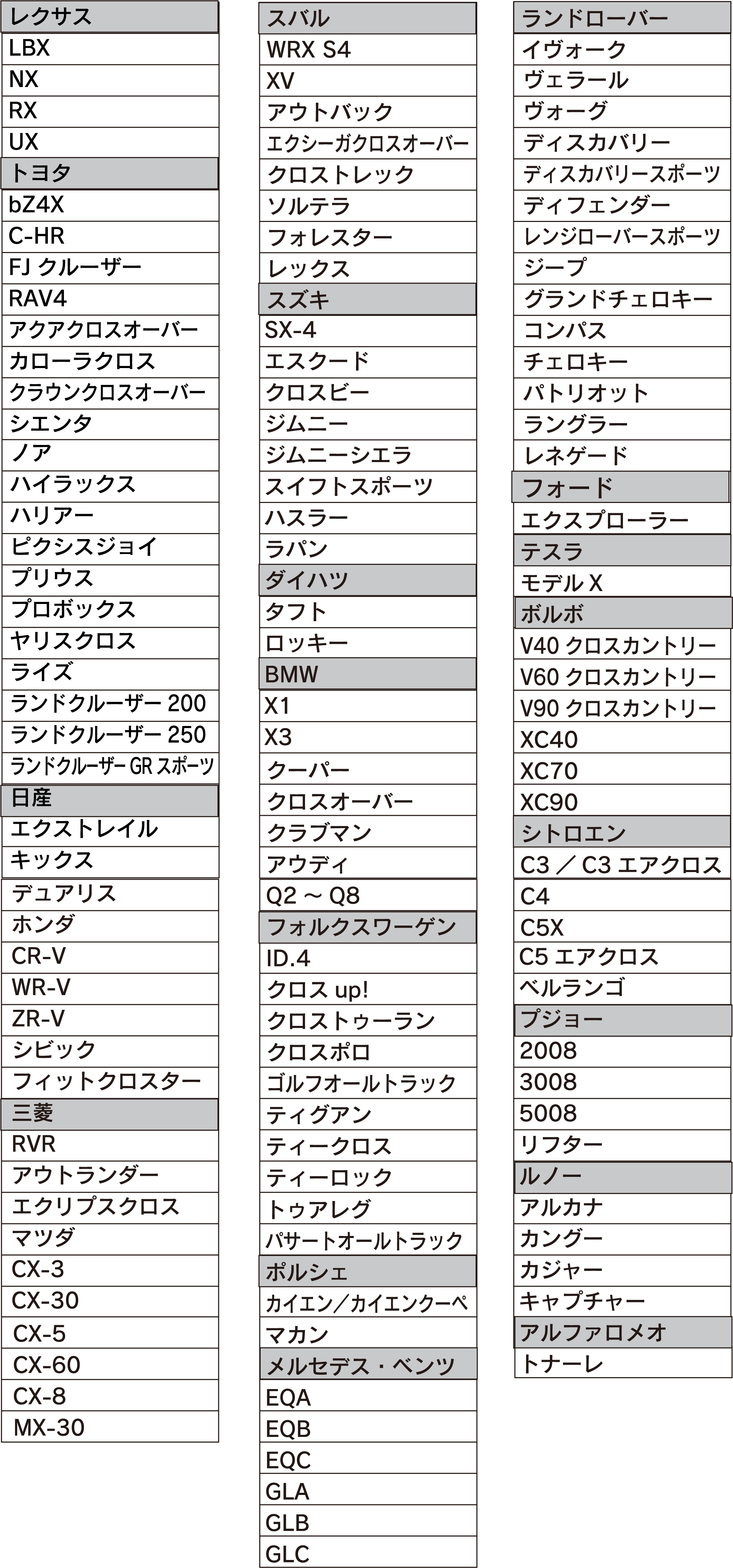 ※ 無塗装樹脂パーツ面積の大きい車は下記表をご覧ください。